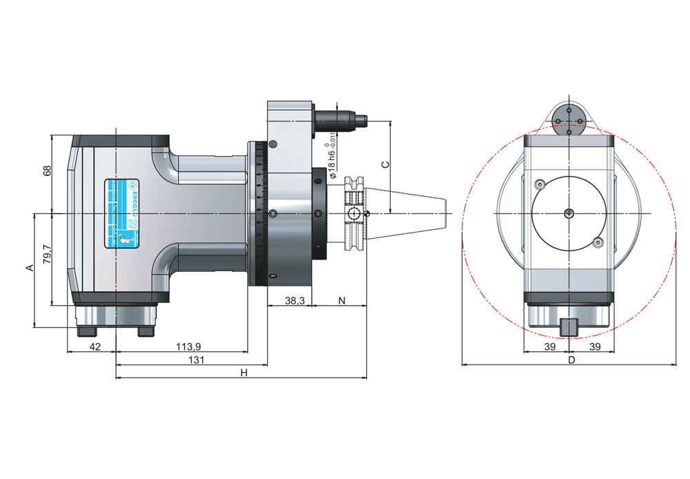 Tête à renvoi d'angle 90° M Type - ISO30 Douilles De Réduction - Bras De Couple Standard